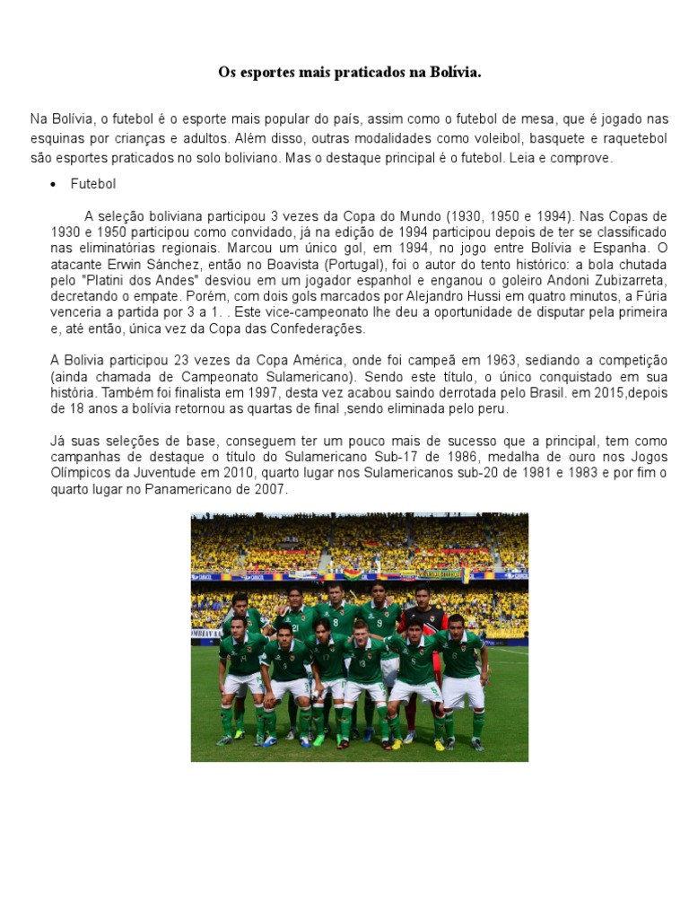 Os Esportes Mais Praticados Na Bolivia Pdf Competicoes Internacionais De Criquete Esportes